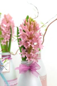 Blumendeko mit Schleife aus Organzaband